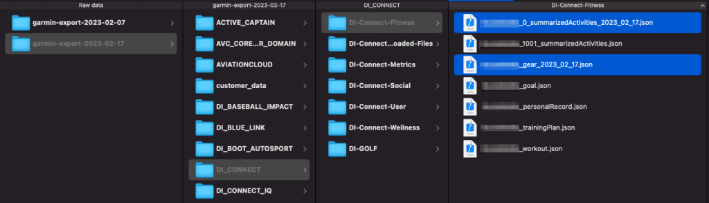 Once you unzip the file, there are many folders to sort through. Garmin Activities live here: