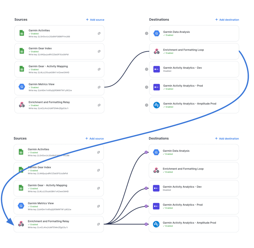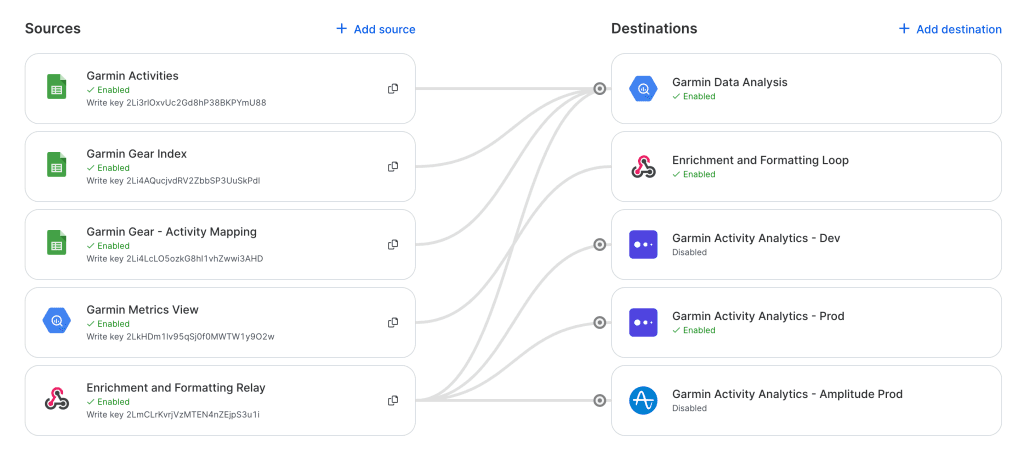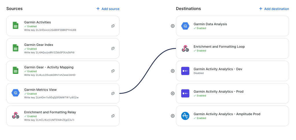 In my case, I could have connected a BigQuery source to Mixpanel as a destination and called it a day, but I wanted to send the data to additional analytics tools like Amplitude to try them out. I also wanted to send the final, formatted events back into BigQuery to see if the standardized event schema made certain reporting easier to build in visualization tools (another project for another day).